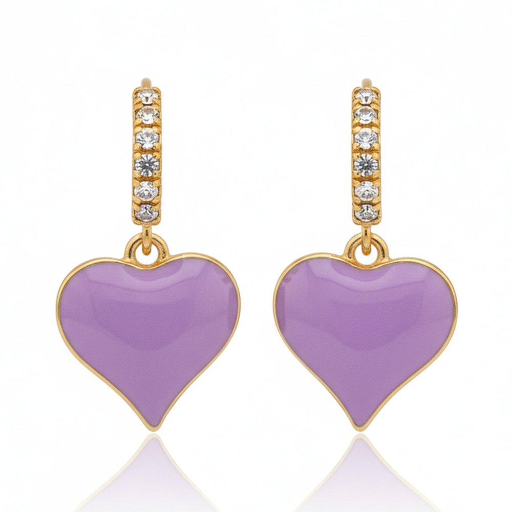 Lavender Purple Enamel Heart & CZ Gold Huggie Hoops | Lavender Dream - Soft Purple Heart DanglesLavender Purple Enamel Heart & CZ Gold Huggie Hoops | Lavender Dream – Soft Purple Heart Dangles